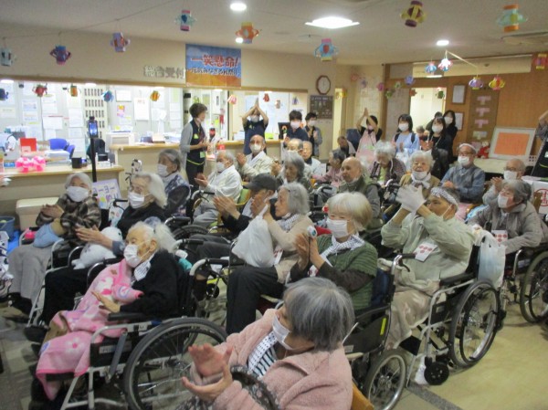 雨天の為、中からの観覧でしたが、演奏を見ようと利用者様