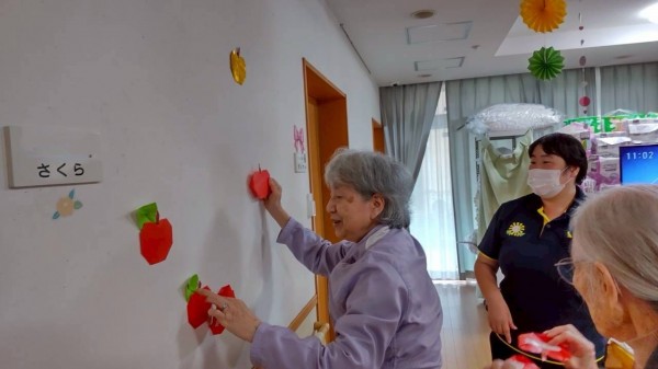 秋の壁面作り りんごの飾りつけを行いました! ~ グループホームみんなの家・横浜宮沢の介護ブログ ~