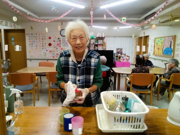 皆様の前で、ホーム長に紹介されると「こんな事するなんて~」ととても恥ずかしそうに手でお顔を隠されていました♡