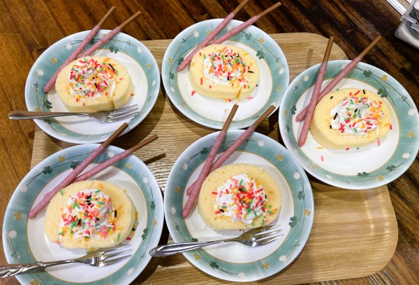 おやつの時間は、ロールケーキで歓迎会