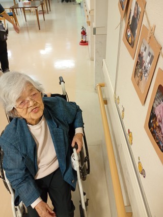 夕食が終わったところなのでしょうか…車椅子で一直線にぱわーすぽっとに向かっております…