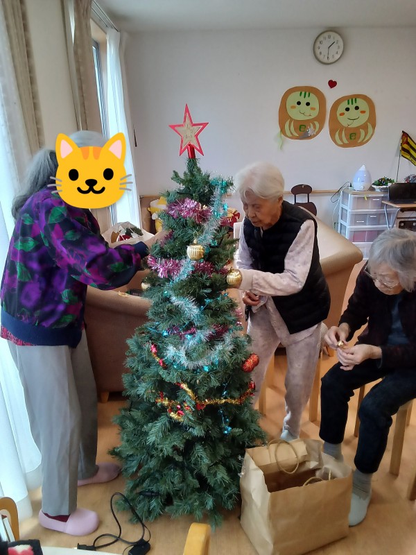 少し早いですが、ホームでは皆さまと一緒に クリスマスツリーの飾り付け を行いました。