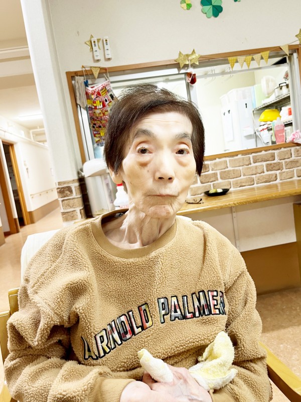 昼食の介助中、目を閉じてしまいなかなか食事が進まなかったS子様にホーム長が「今ね、美味しいお饅頭を頑張って作っているから、S子さんも頑張ってお昼ご飯食べようね」と声をかけると、S子はぱっと目を開けて「わかりました!」と元気なお返事。その様子に職員一同、思わず笑顔になりました。