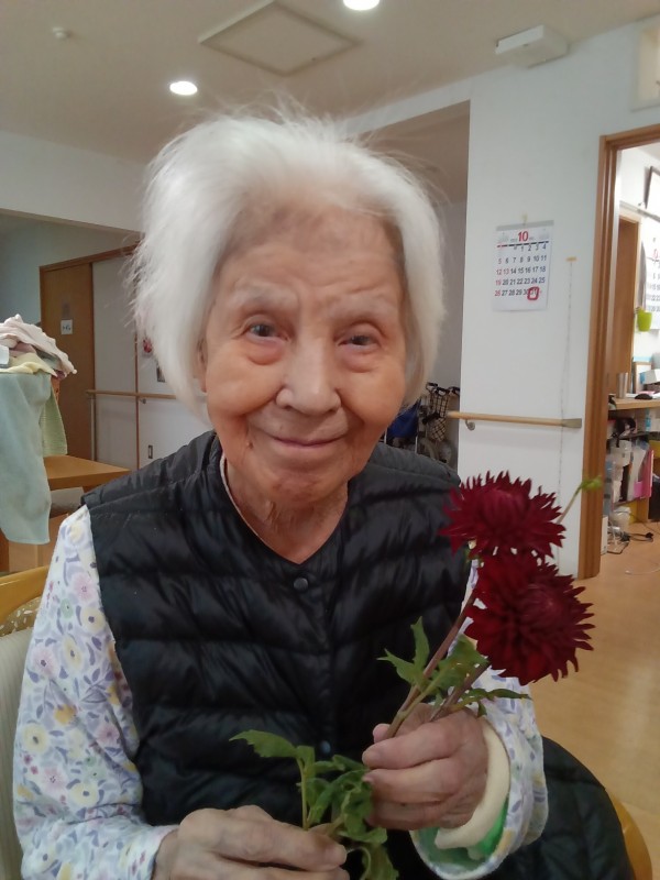 本日は、ホームの玄関先で元気に咲いた ダリアの花をきっかけに、皆さまとの素敵なひとときをお届けします。