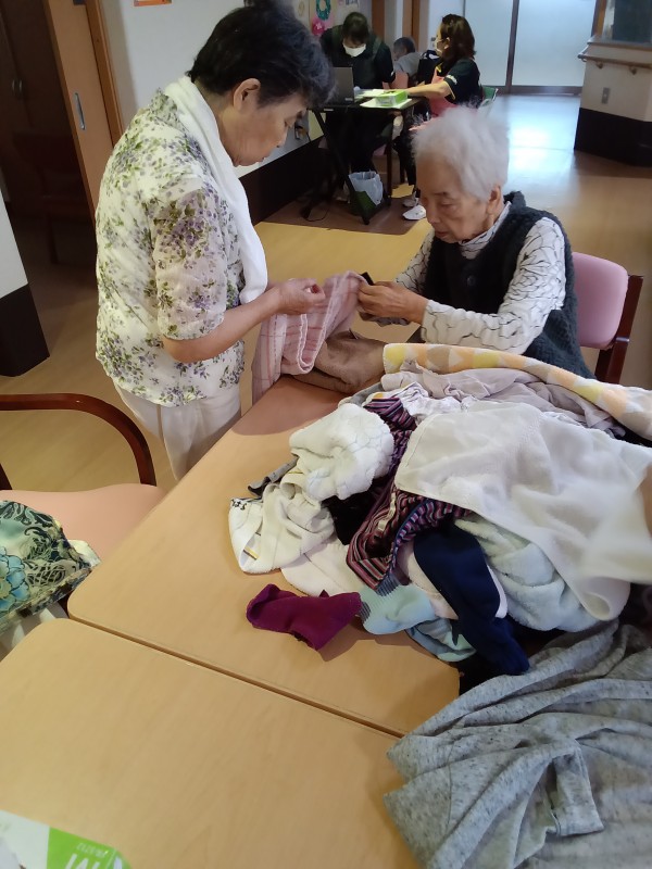 洗濯物を畳むのをお手伝いして頂いているご様子です!