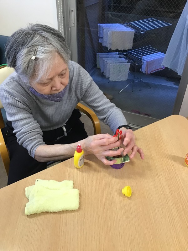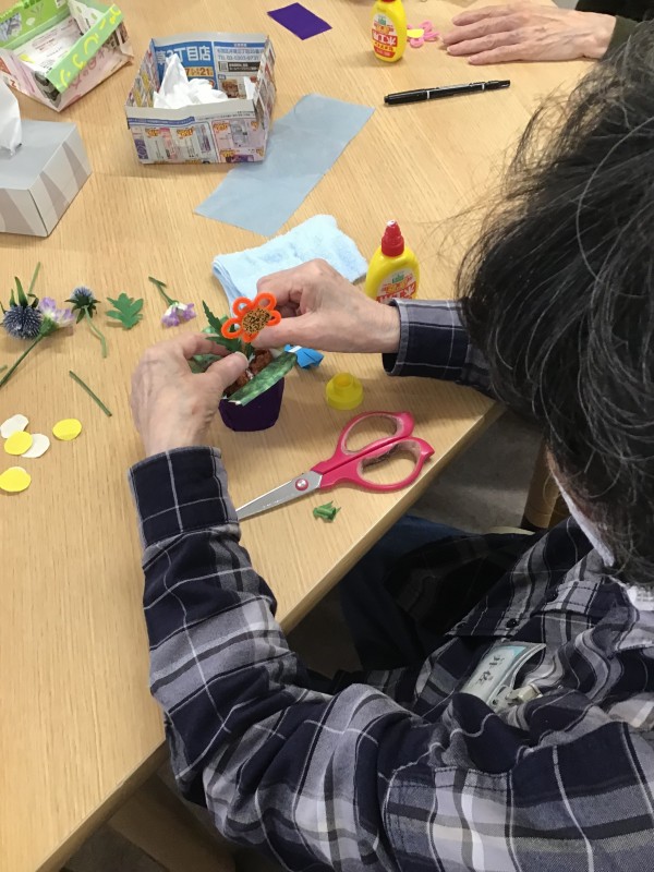 今回のレクレーションでは、昔懐かしいダンシングフラワーを作りました。