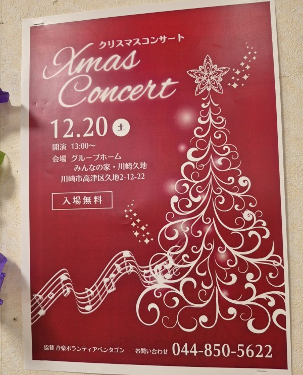 グループホームみんなの家・川崎久地でクリスマスコンサートが開催予定です!
