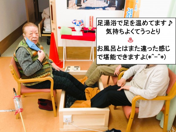 だいぶ前にご紹介していますが、この足温浴を好んで使われているご利用者様も多くいらっしゃるので、その光景を是非ご覧ください♪