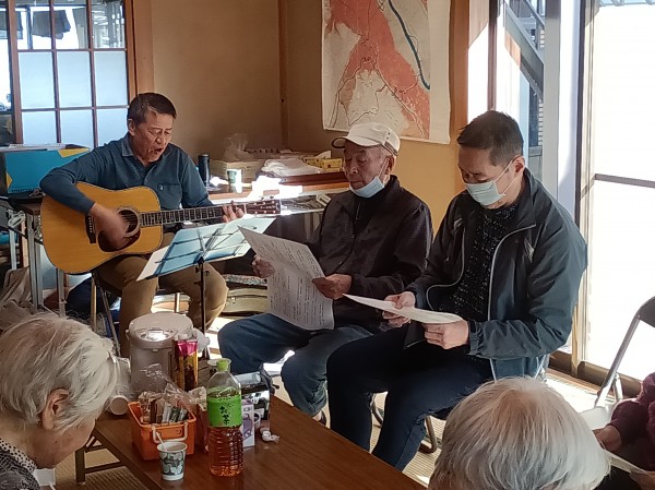 ティータイムを楽しみながら、ボランティアさんのギター演奏に合わせて