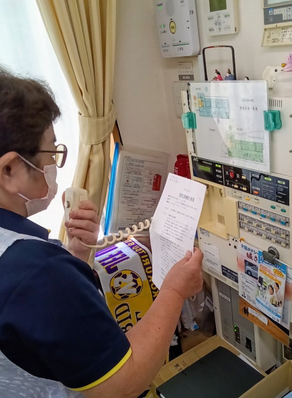 今回は夜間でなく「日中時」の想定なので職員も多かったので1,火消し役、2,消防連絡、3,館内放送、4,避難誘導と役割分担が出来たのでとても早く避難完了!