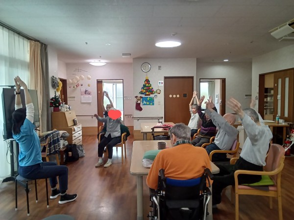 今回は訪問運動教室の一環として、佐倉トレーナー(先生)がホームにお見えになりました。
