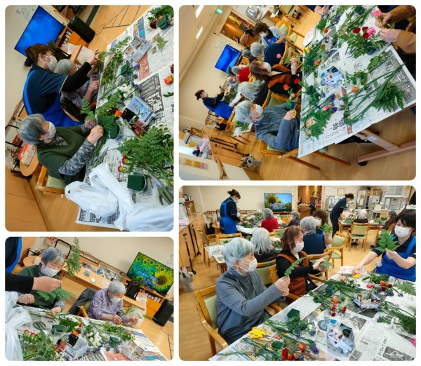 毎月、皆さんが楽しみにされているフラワーアレンジメントのご報告です。