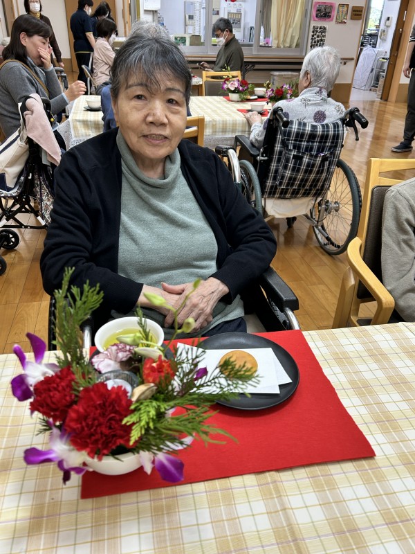 完成したアレンジのお花を見ながらのお茶タイム