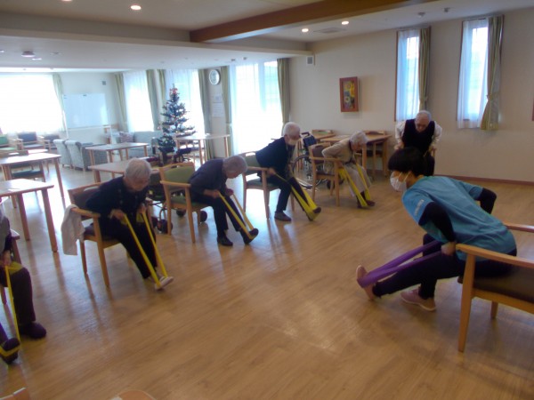 いつも通り、チューブを使った運動。