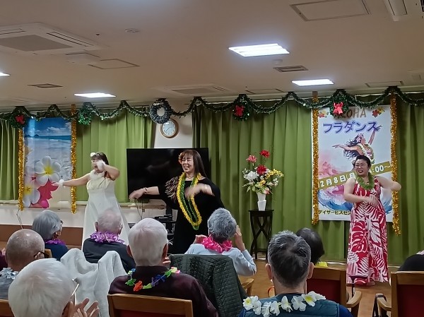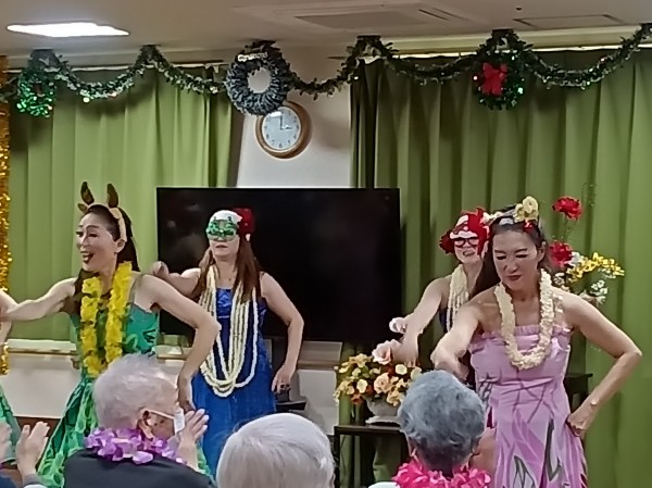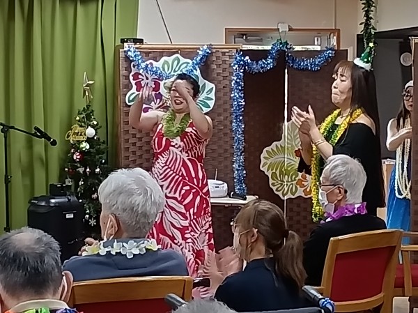 6曲程の音楽に合わせてのフラダンスに、クリスマスメドレーに合わせて踊りを拝見しました!