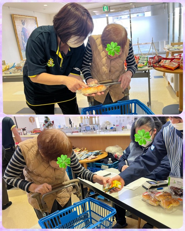 先にお買い物を済ませたお母さまが袋を広げ、なにやら職員とお話し中‥