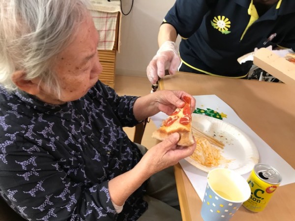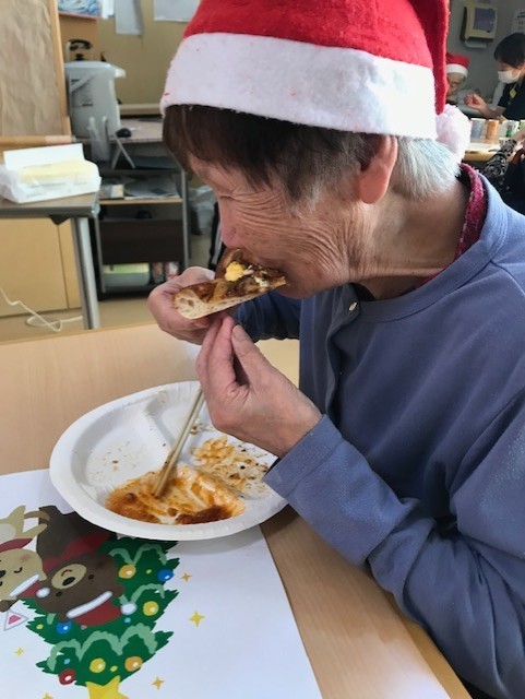 いつものお昼ご飯の代わりにピザやハンバーグにポータジュをご用意。