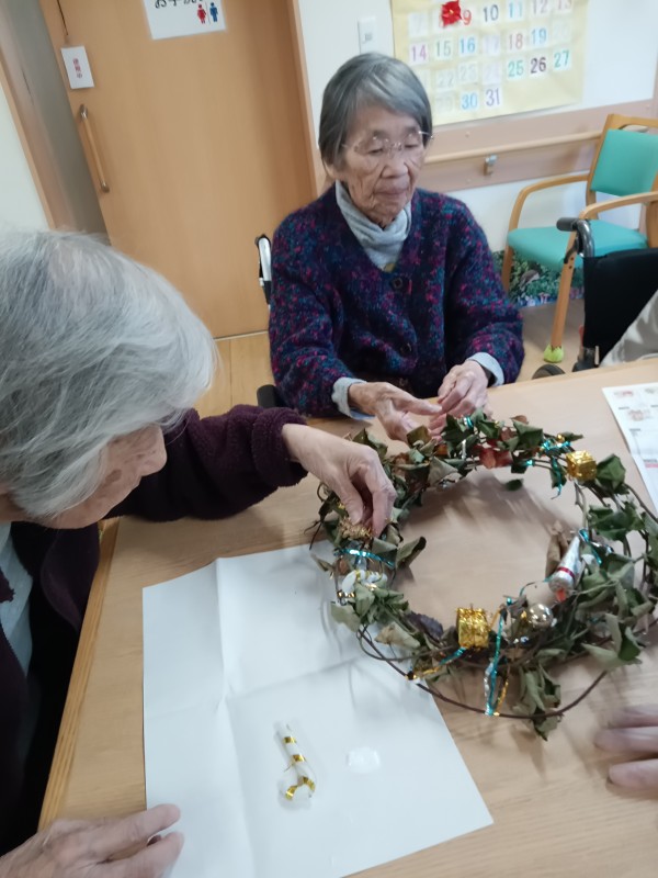 悪戦苦闘しながら可愛いリースが出来上がりました(^▽^)/