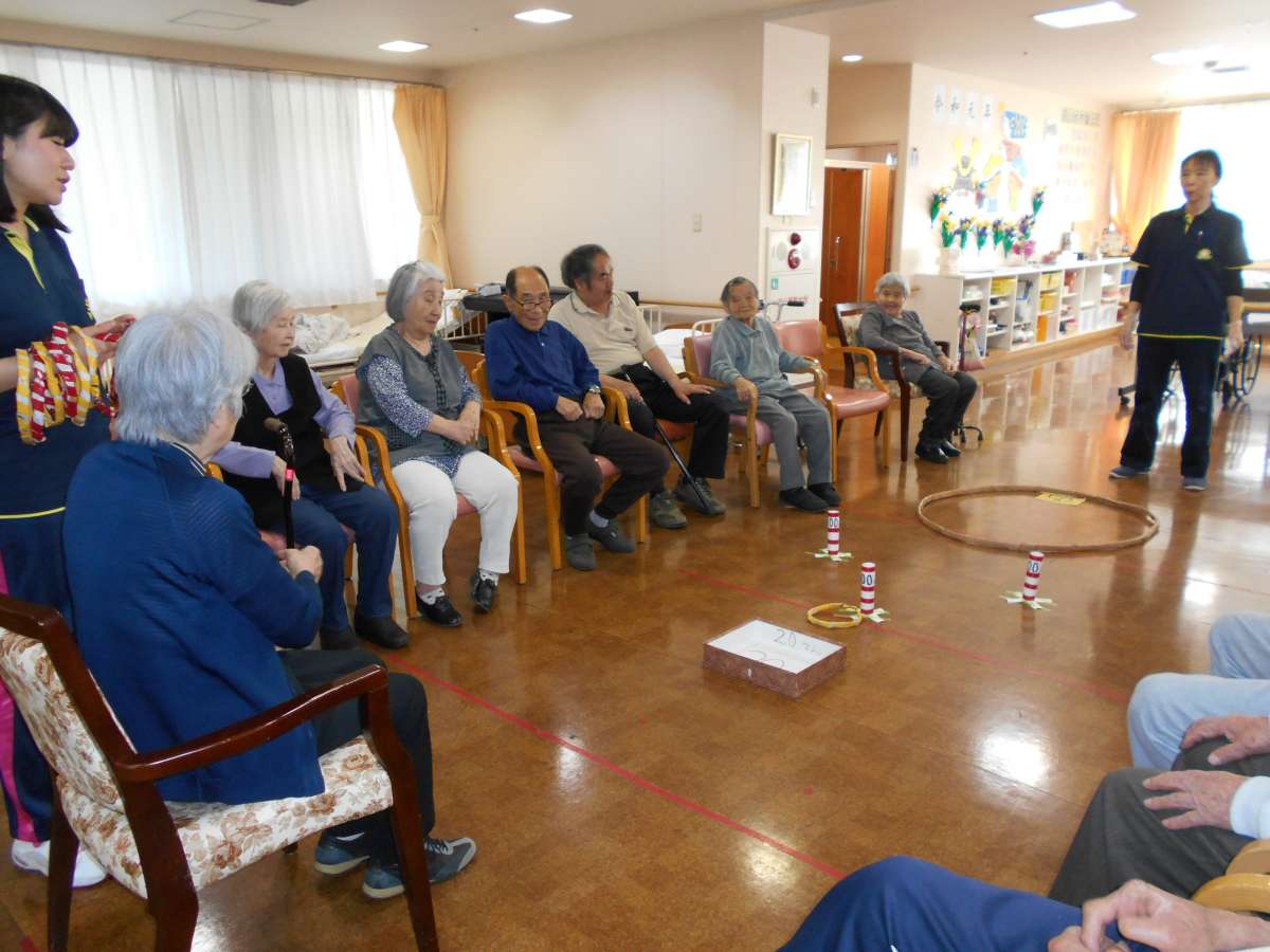 なかなか入らず、手前のちょっと高めの得点の箱めがけて