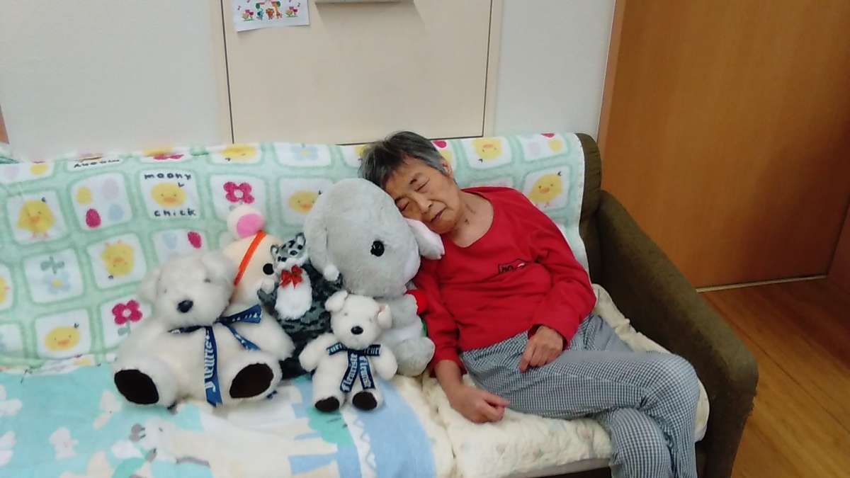 女性のご利用者様それぞれお気に入りのぬいぐるみを抱っこされ子供のように可愛がっています!