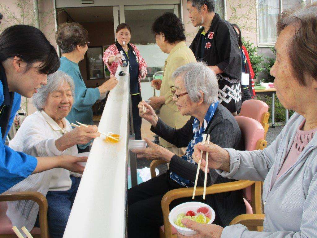 今月は毎年恒例の『七夕そーめん流し』が賑々しく開催されました。