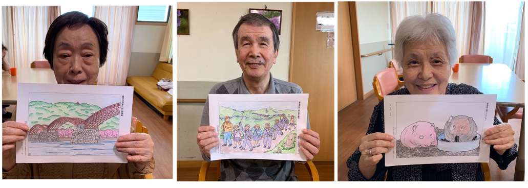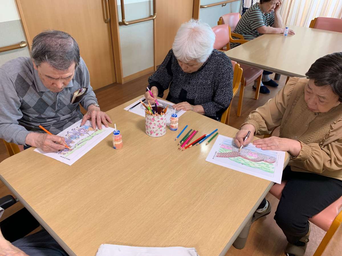 最近、新しく入所されたN様に塗り絵をしていただくと、なんと書き始めると上手いではないですか。