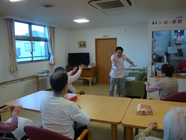 初の訪問マッサージの先生がきて、軽いミニ体操を2階の食堂でしてくれました♪