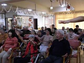 隣のデイサービスと一緒に体操を楽しんでいただきました。