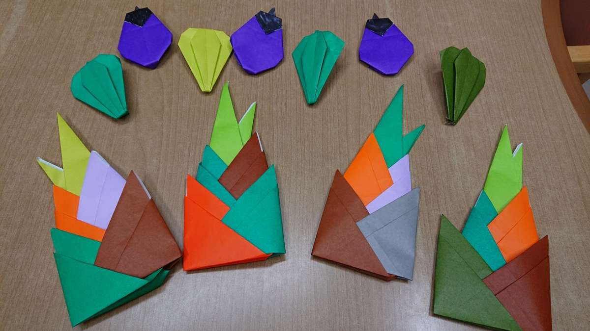 お花の形に切って頂いたり、折り紙で野菜を沢山作りました♡