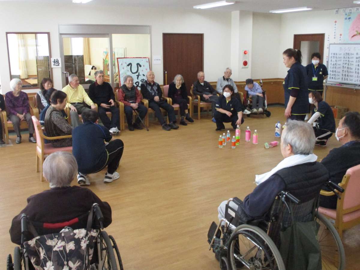ひな祭りでは毎年恒例のスタッフによるひな壇組体操を披露させて頂きました。