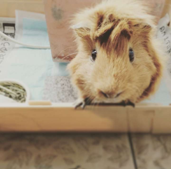 写真の動物は、飯田所長の相棒で“モルモットのサクラちゃん”です。