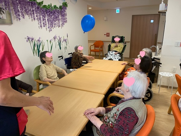 今日はみんなでテーブルを囲み『ふわふわ風船バレー』を行いました🎈