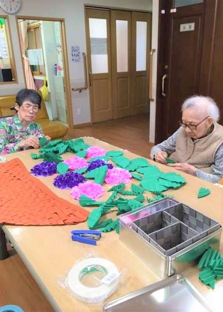今回は今月行いましたレクレーションの「紫陽花の花作り」をご紹介いたします。