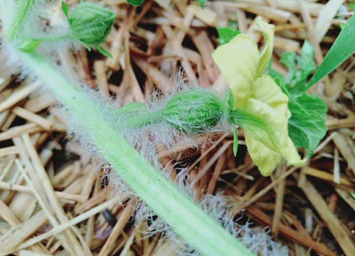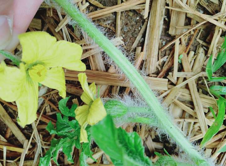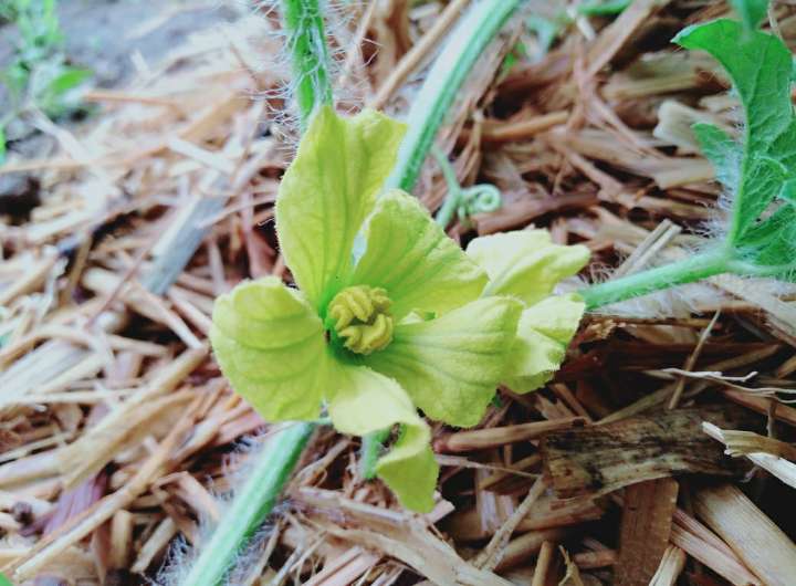 今朝7時30分、菜園を覗くとスイカの雌花、雄花が開花していました。