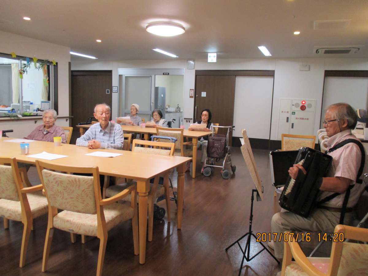 7月半ば、アコーディオンコンサート・いきいきリズム体操を行いました。