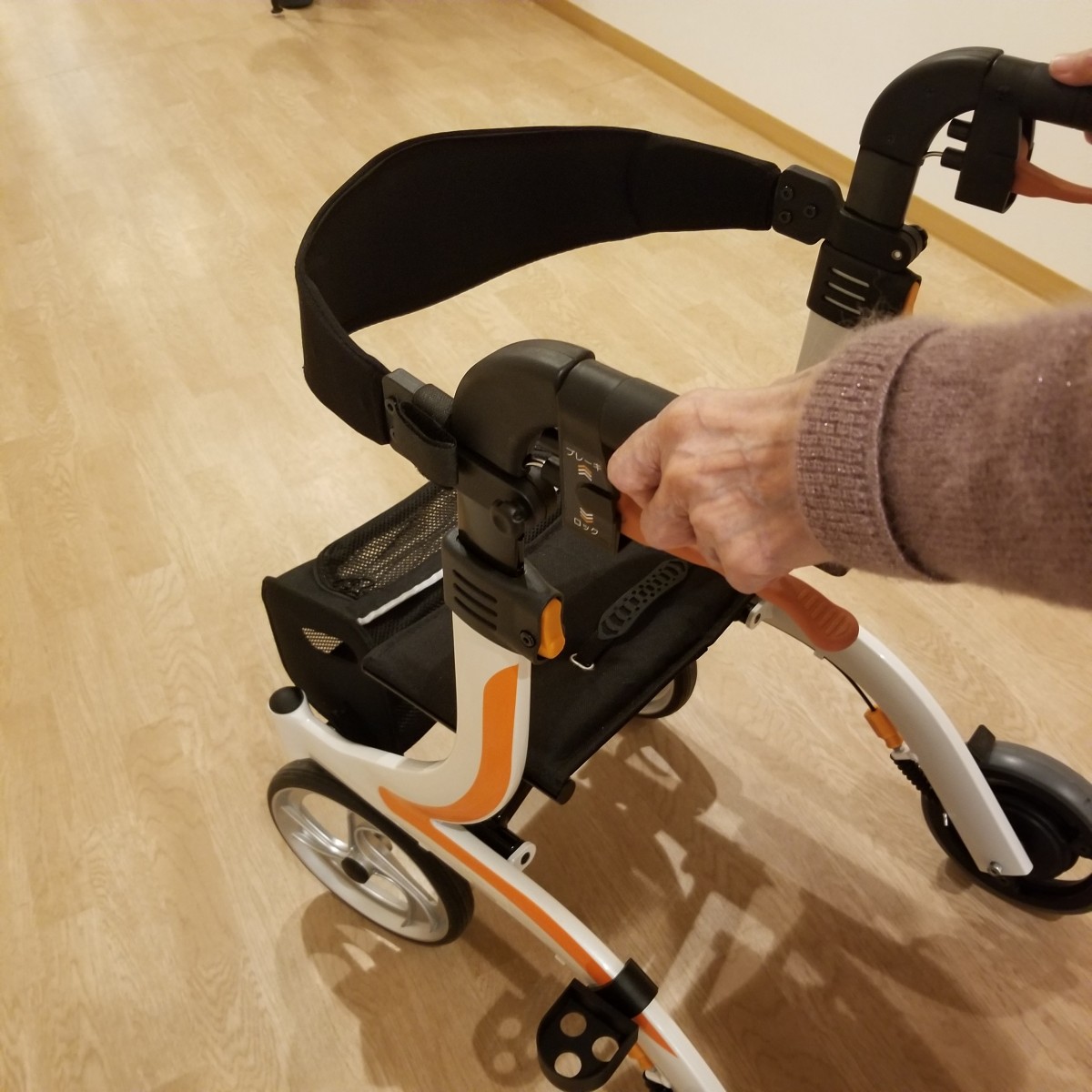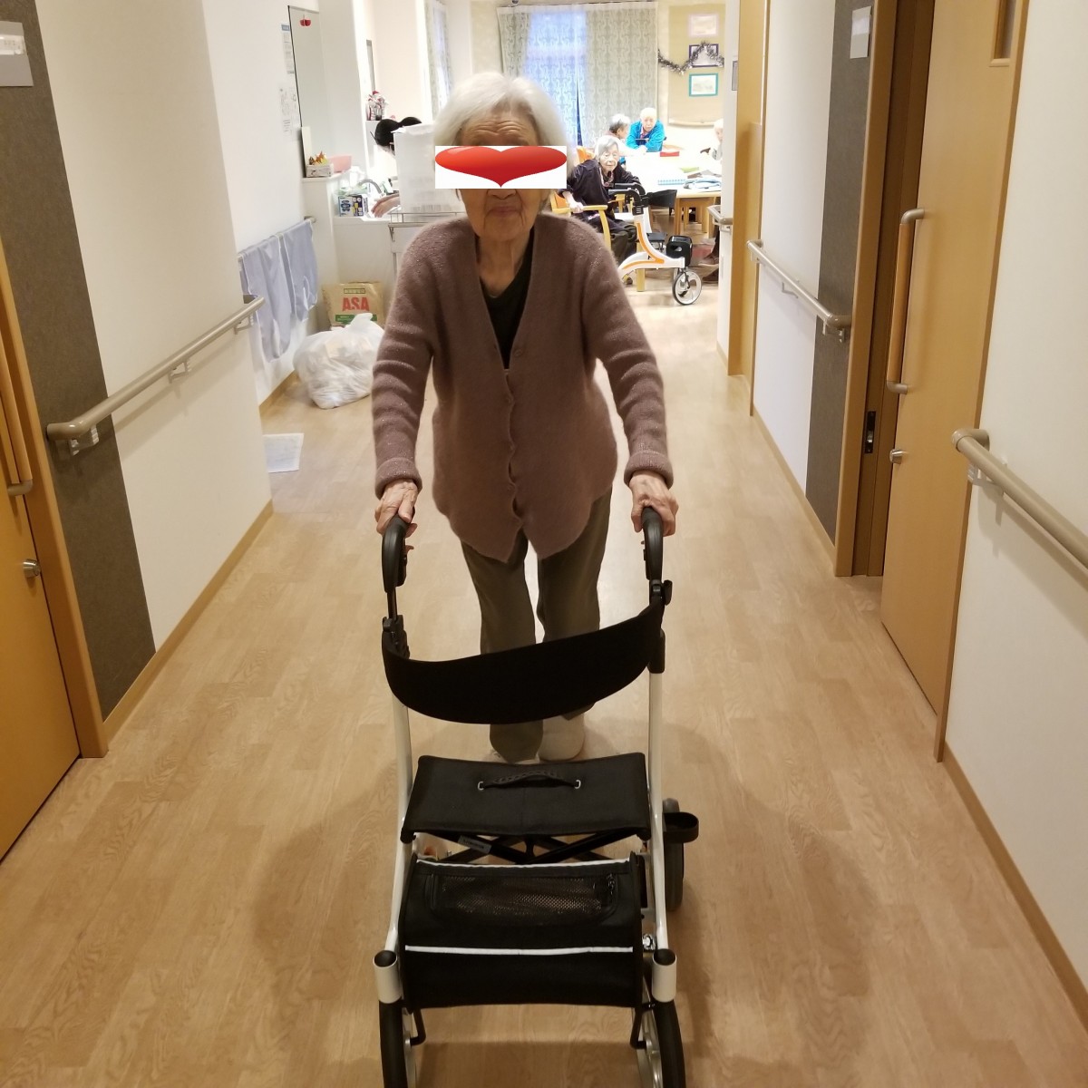 ①歩行練習⇒速度抑制装置付きの歩行器にてとても安全に歩けますよ