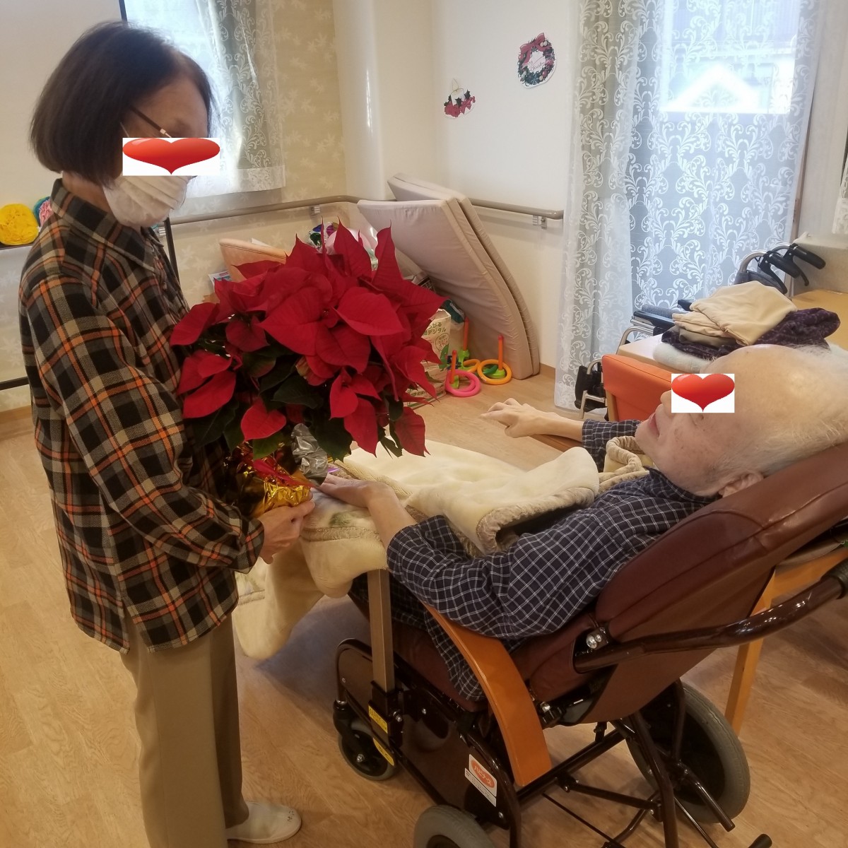②リクライディング式車椅子での離床⇒ホールに来られる事により色んな方から話しかけていただいて