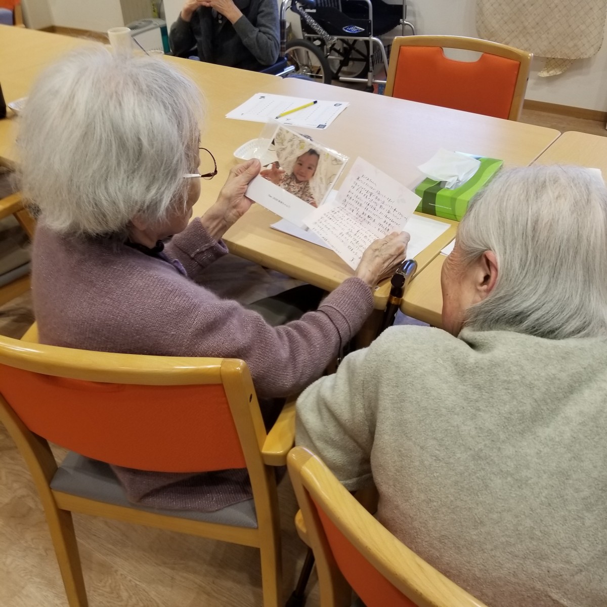 仲の良いご入居者様と(可愛いね)と笑顔でご覧になられてますよ