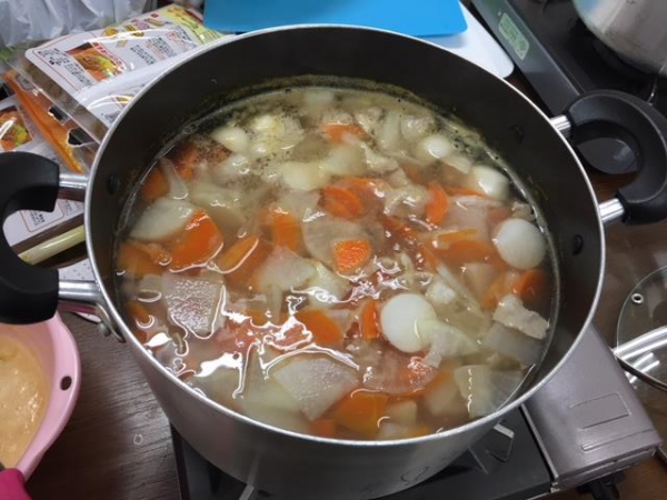 まず始めに、豚汁の具材から切り刻みます!!