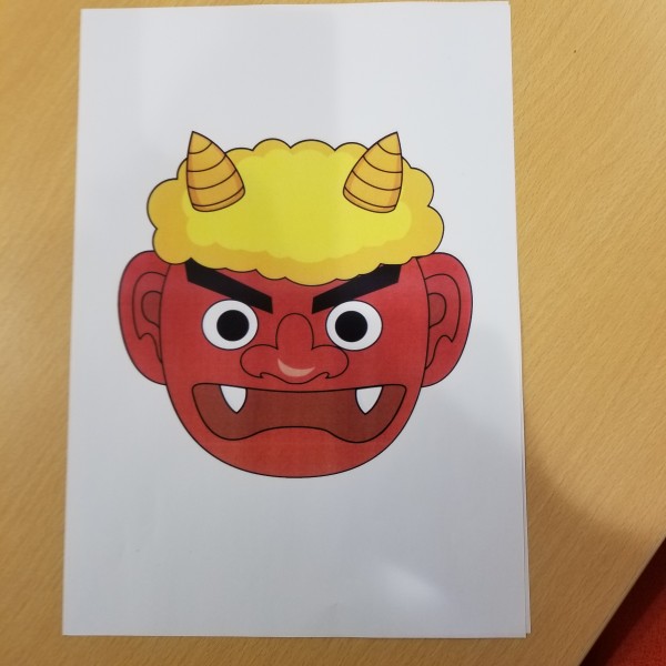 お面をかぶった職員に豆を沢山ぶつけましょうね(笑い)
