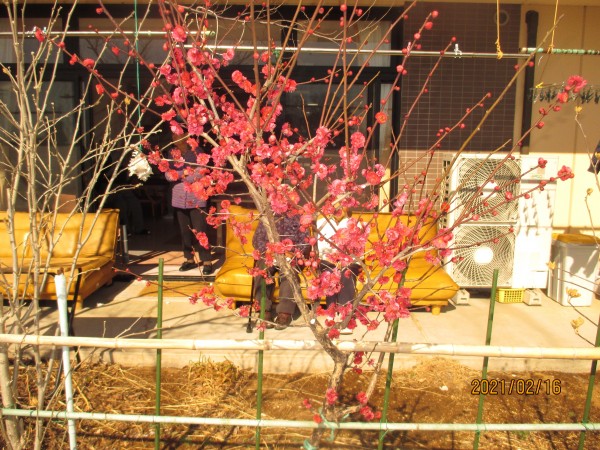 紅梅の向こうに見えるのは……