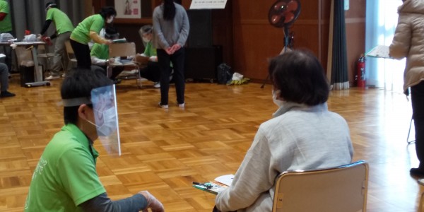 コロナ感染対策で、総合福祉センターの1階ホールを使い行いました。