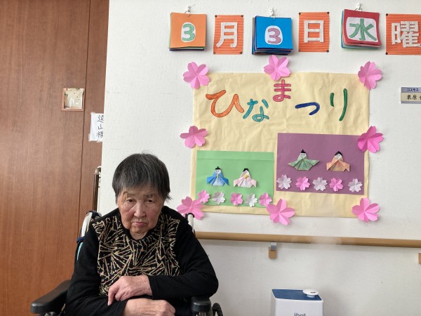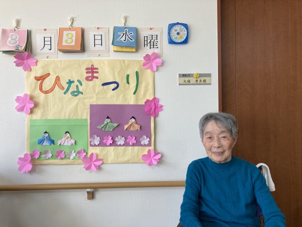 3月3日のひな祭りの日手作りのお雛様とで記念撮影をしました。