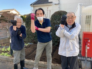 園芸クラブを立ち上げ、男性の利用者様お二人と一緒にいざ畑へ( `ー´)ノ!!