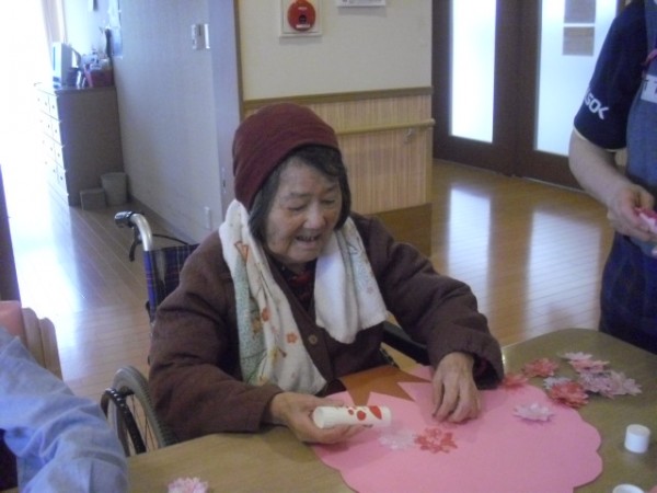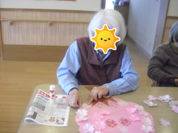 GH横浜上瀬谷・・・・いち早くサクラ一色、「貼り絵」を作成しようとコツコツと頑張っています\(◎o◎)/!