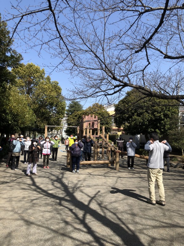 羽根倉児童公園は桜の木があり、そろそろ咲きそうなつぼみがちらほら。来週あたり桜の下での体操となりそうで楽しみです。