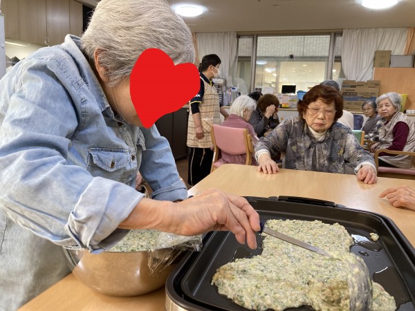 焼き上がったら切り分け、ご入居者様にお配りします。