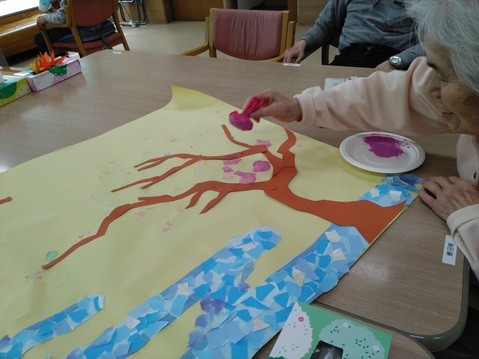利用者様と一生懸命ペタペタしましたが、意外と力がいるんです。