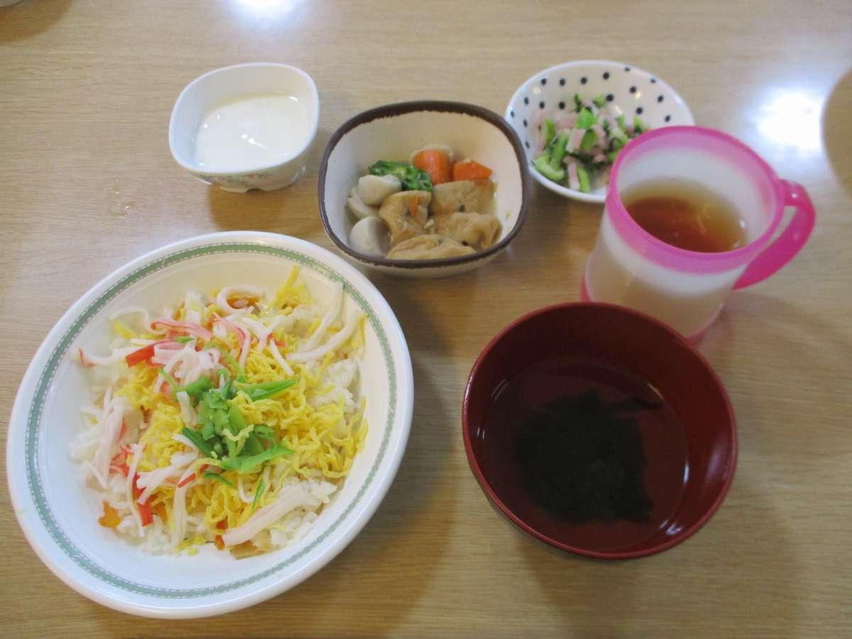今日の昼食は、大人気のちらし寿司です~