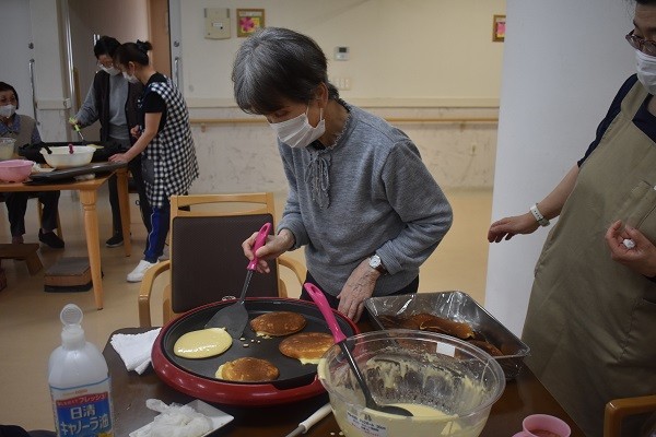 生地を少しねかせて、ホットプレートで